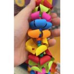 Skills being learned and used: hand eye coordination, threading beads and paper flowers, color coordination, and more.